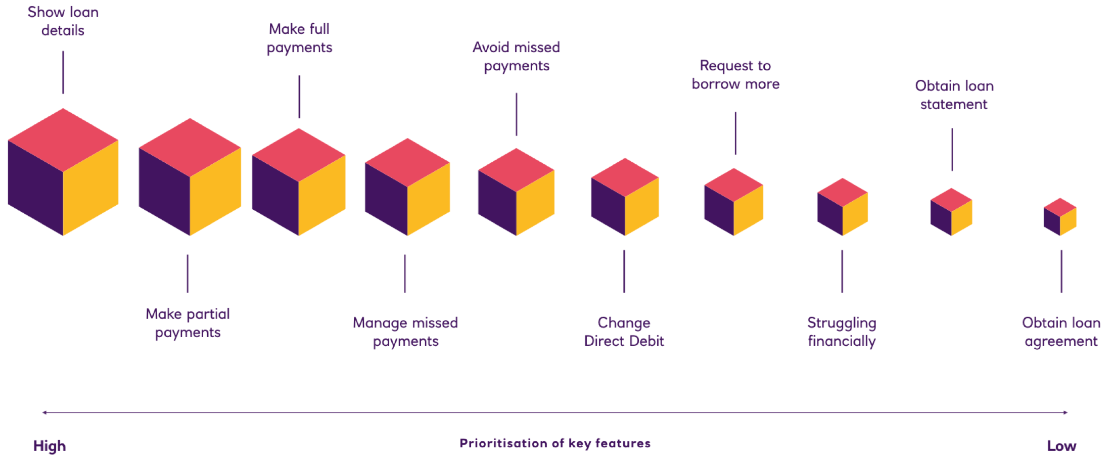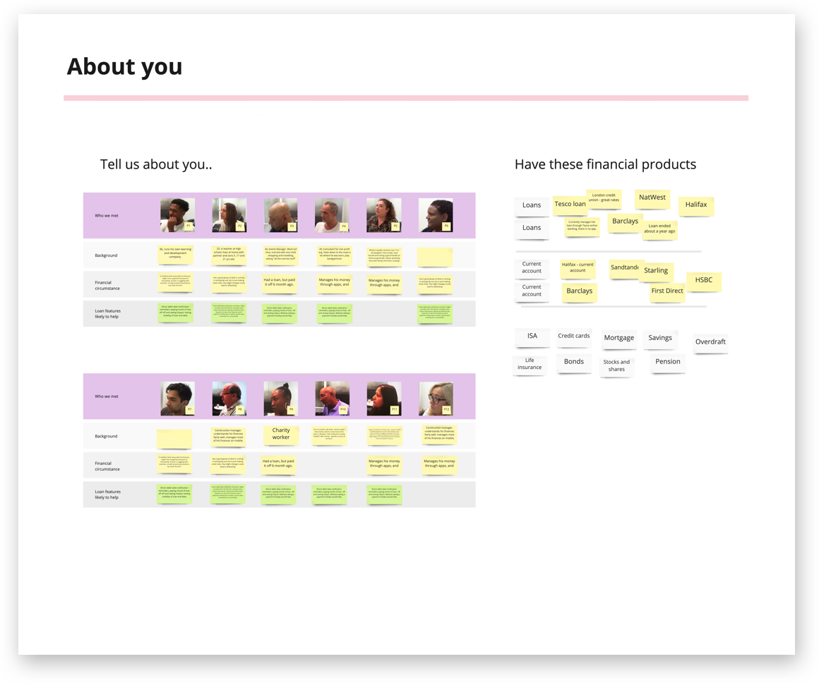 Here we agreed an initial set of prioritised features to explore, understanding why these were important to the bank. We could then compare these with the needs of actual customers.