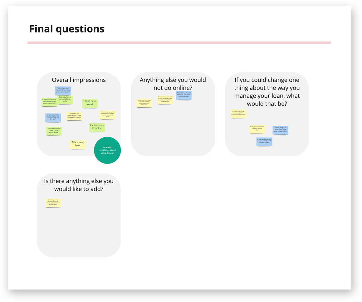 Formative research gave us some insight from customers: what their habits were, issues and pain-points that they ran into, and their mindset, e.g. the ways in which they would try and perform different actions.