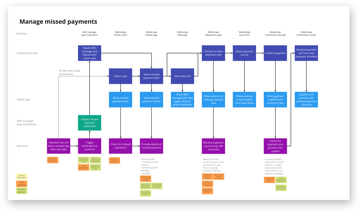 Design blueprints mapped customer touchpoints for each feature, and the back-end services required to make them happen.