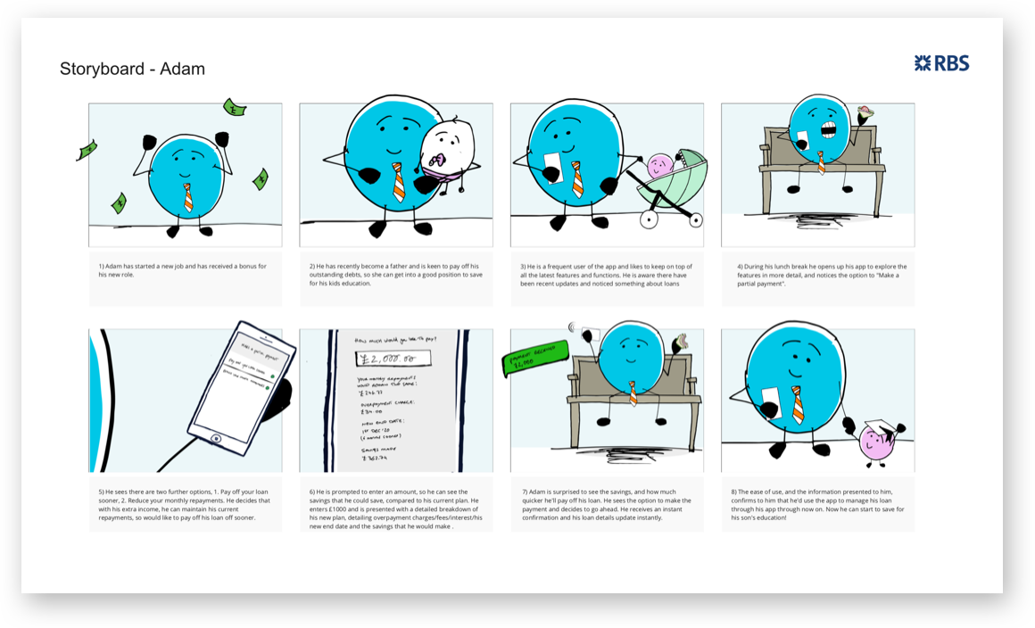 Storyboards of different customer scenarios helped to illustrate to stakeholders what the experiences of customers were, and what they could be.